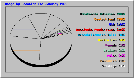 | 1 | 12398 | 26,31% | 11789 | 29,27% | 583300 | 25,49% | 0 | 0,00% | 0 | 0,00% | Unbekannte Adressen |